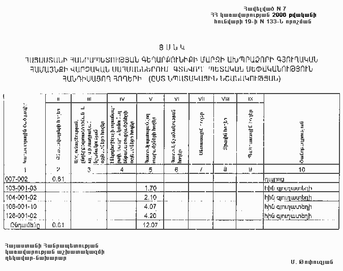 19 հունվարի 2006 թվականի N 133-Ն