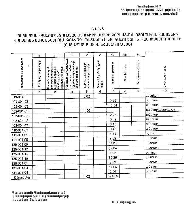 7. Հայաստանի Հանրապետության Սյունիքի մարզպետին` Հայաստանի Հանրապետության կառավարության 2000 թվականի հոկտեմբերի 23-ի N 656 որոշմամբ սահմանված կարգով` սկզբնական հաշվառման տվյալների հիման վրա ապահովել մարզի տարածքում ընթացիկ հաշվառման աշխատանքների իրականացումը: