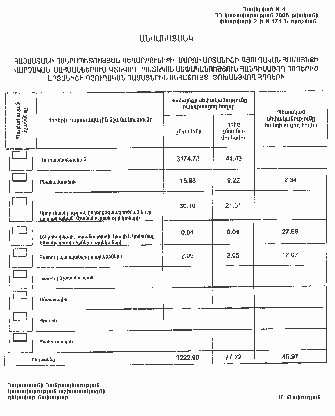 4. Ընդունել ի գիտություն Հայաստանի Հանրապետության Գեղարքունիքի մարզի Արտանիշի գյուղական համայնքի հողային ֆոնդի առկայության և բաշխման մասին հաշվետվությունը` 2005 թվականի հունվարի 1-ի դրությամբ` համաձայն N 8 հավելվածի: