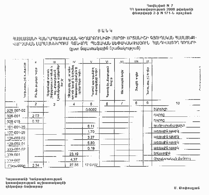 7. Հայաստանի Հանրապետության Գեղարքունիքի մարզպետին` Հայաստանի Հանրապետության կառավարության 2000 թվականի հոկտեմբերի 23-ի N 656 որոշմամբ սահմանված կարգով` սկզբնական հաշվառման տվյալների հիման վրա ապահովել մարզի տարածքում ընթացիկ հաշվառման աշխատանքների իրականացումը: