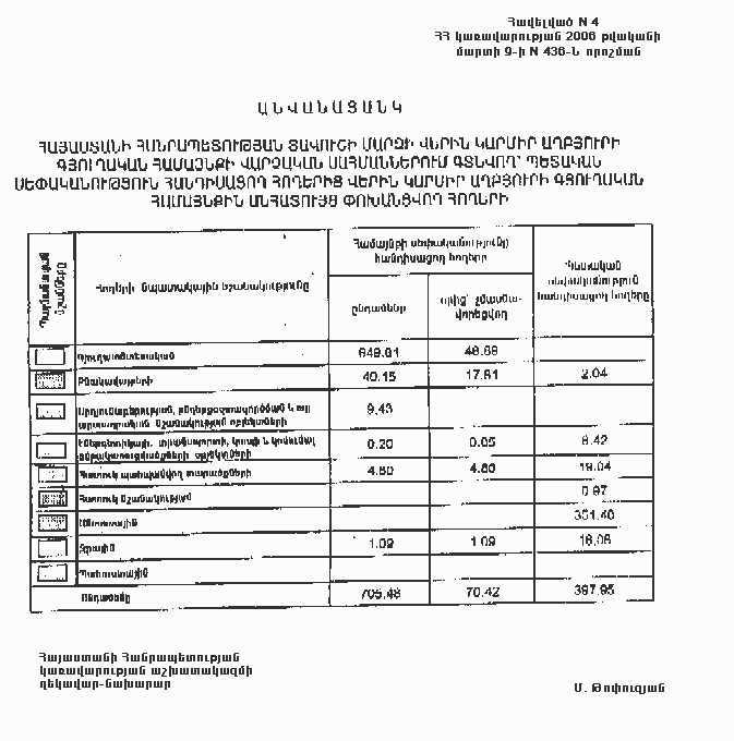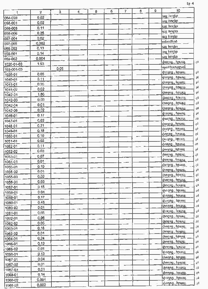 4. Ընդունել ի գիտություն Հայաստանի Հանրապետության Տավուշի մարզի Վերին Կարմիր աղբյուրի գյուղական համայնքի հողային ֆոնդի առկայության և բաշխման մասին հաշվետվությունը՝ 2005 թվականի հունվարի 1-ի դրությամբ՝ համաձայն NN 8 և 9 հավելվածների: