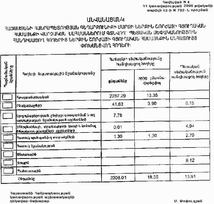 4. Ընդունել ի գիտություն Հայաստանի Հանրապետության Գեղարքունիքի մարզի Ներքին Շորժայի գյուղական համայնքի հողային ֆոնդի առկայության և բաշխման մասին հաշվետվությունը` 2005 թվականի հունվարի 1-ի դրությամբ` համաձայն NN 8 և 9 հավելվածների: