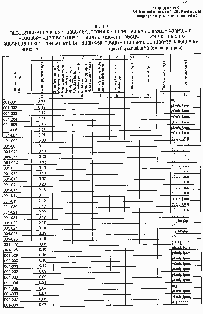 6. Թույլատրել Հայաստանի Հանրապետության կառավարությանն առընթեր անշարժ գույքի կադաստրի պետական կոմիտեի նախագահին Հայաստանի Հանրապետության պետական գեոդեզիական ցանցի հավասարակշռման արդյունքների հիման վրա Հայաստանի Հանրապետության վարչատարածքային միավորների սահմանանիշերի կոորդինատների ժողովածուի հրատարակումից հետո հողային ֆոնդի ընթացիկ հաշվառման ժամանակ Հայաստանի Հանրապետության Գեղարքունիքի մարզի Ներքին Շորժայի գյուղական համայնքի հողային հաշվեկշռում սահմանված կարգով կատարել համապատասխան փոփոխություններ: