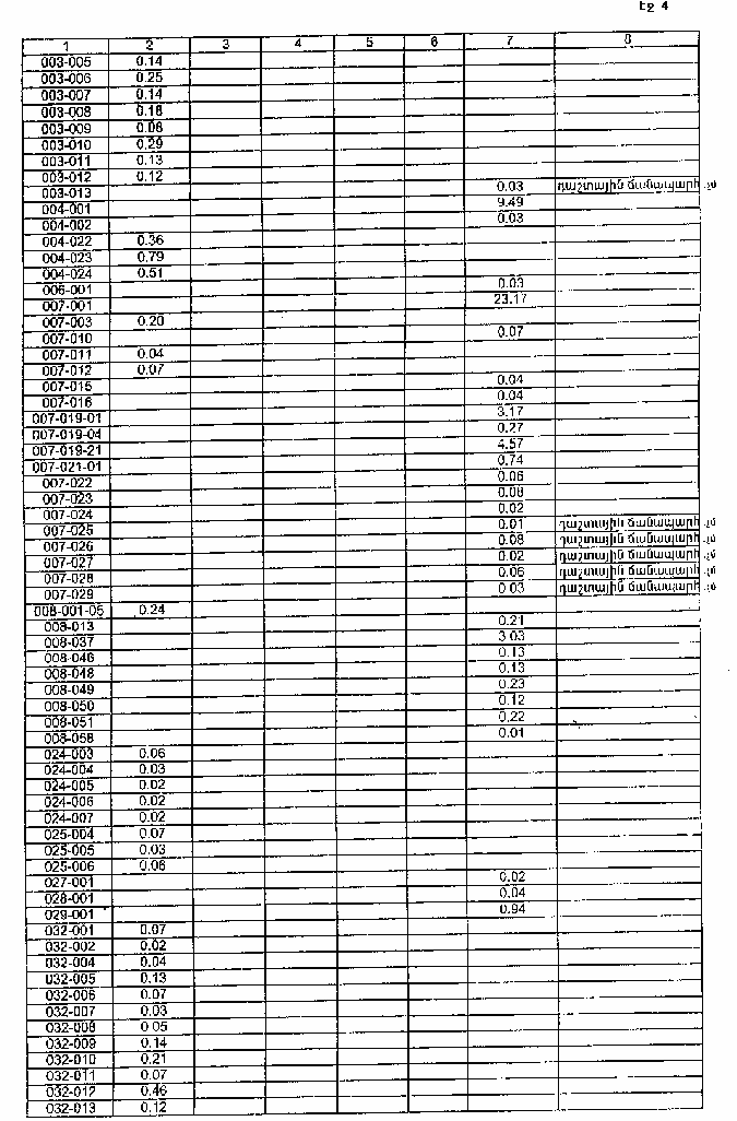 4. Ընդունել ի գիտություն Հայաստանի Հանրապետության Սյունիքի մարզի Քաջարանի քաղաքային համայնքի հողային ֆոնդի առկայության և բաշխման մասին հաշվետվությունը` 2005 թվականի հունվարի 1-ի դրությամբ` համաձայն N 8 հավելվածի: