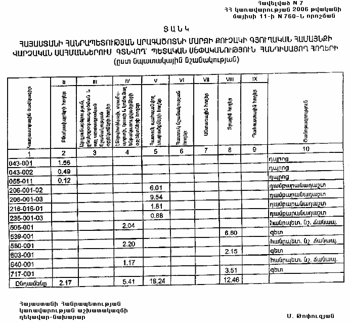7. Հայաստանի Հանրապետության Արագածոտնի մարզպետին` Հայաստանի Հանրապետության կառավարության 2000 թվականի հոկտեմբերի 23-ի N 656 որոշմամբ սահմանված կարգով` սկզբնական հաշվառման տվյալների հիման վրա ապահովել մարզի տարածքում ընթացիկ հաշվառման աշխատանքների իրականացումը:
