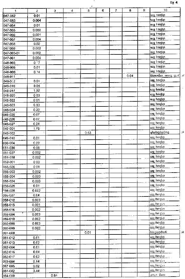 4. Ընդունել ի գիտություն Հայաստանի Հանրապետության Արագածոտնի մարզի Աշնակի գյուղական համայնքի հողային ֆոնդի առկայության և բաշխման մասին հաշվետվությունը՝ 2005 թվականի հունվարի 1-ի դրությամբ՝ համաձայն NN 8 և 9 հավելվածների: