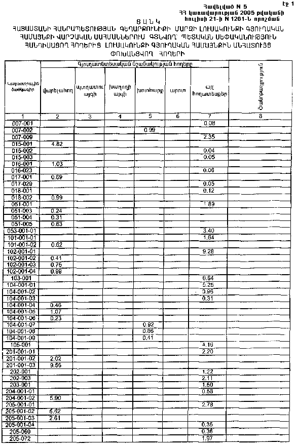 21 հուլիսի 2005 թվականի N 1261-Ն