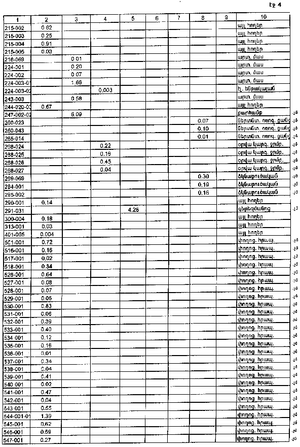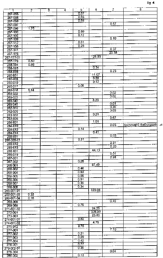 4. Ընդունել ի գիտություն Հայաստանի Հանրապետության Լոռու մարզի Լեռնապատի գյուղական համայնքի հողային ֆոնդի առկայության և բաշխման մասին հաշվետվությունը՝ 2005 թվականի հունվարի 1-ի դրությամբ՝ համաձայն NN 8 և 9 հավելվածների: