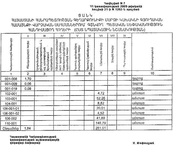 21 հուլիսի 2005 թվականի N 1282-Ն
