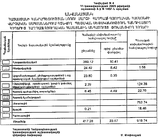 4 օգոստոսի 2005 թվականի N 1457-Ն