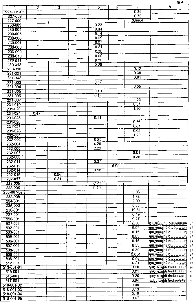 4. Ընդունել ի գիտություն Հայաստանի Հանրապետության Լոռու մարզի Հաղպատի գյուղական համայնքի հողային ֆոնդի առկայության և բաշխման մասին հաշվետվությունը` 2005 թվականի հունվարի 1-ի դրությամբ` համաձայն N 8 հավելվածի: