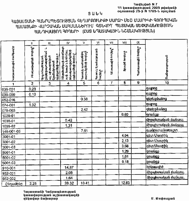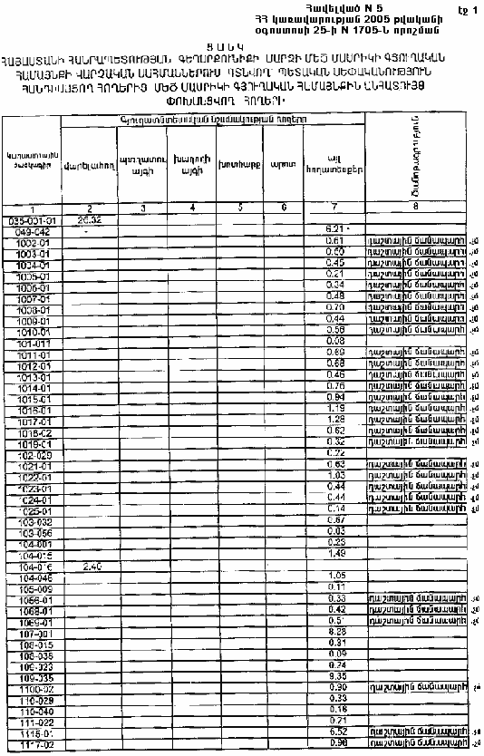 25 օգոստոսի 2005 թվականի N 1705-Ն