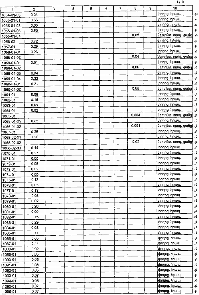 4. Ընդունել ի գիտություն Հայաստանի Հանրապետության Գեղարքունիքի մարզի Մեծ Մասրիկի գյուղական համայնքի հողային ֆոնդի առկայության և բաշխման մասին հաշվետվությունը՝ 2005 թվականի հունվարի 1-ի դրությամբ՝ համաձայն NN 8 և 9 հավելվածների: