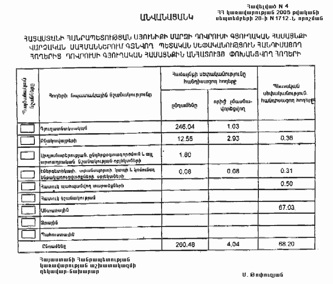 ա) Հայաստանի Հանրապետության Սյունիքի մարզի Դովրուսի գյուղական համայնքին անհատույց սեփականության իրավունքով փոխանցվող 260.48 հեկտար հողերից 4.04 հեկտարը մասնավորեցման ենթակա չէ.
