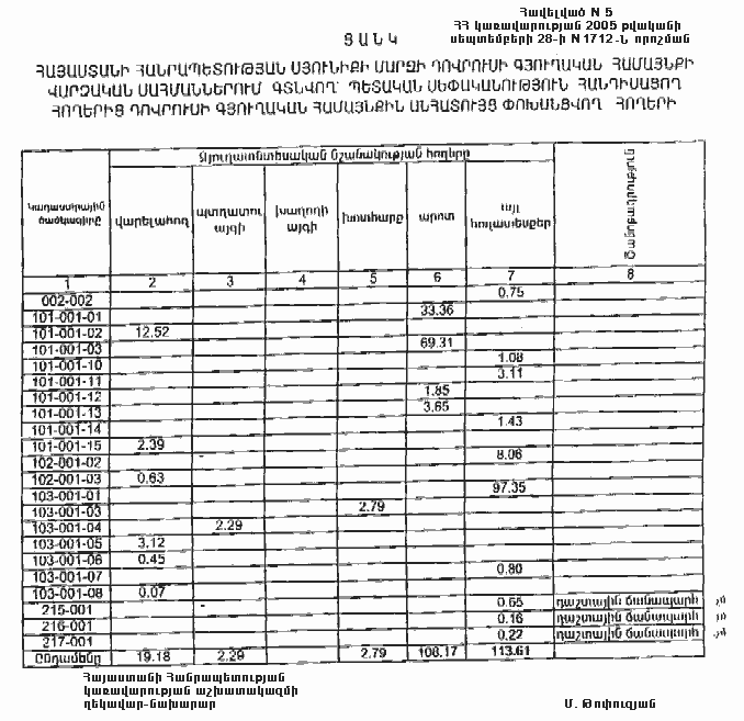 4. Ընդունել ի գիտություն Հայաստանի Հանրապետության Սյունիքի մարզի Դովրուսի գյուղական համայնքի հողային ֆոնդի առկայության և բաշխման մասին հաշվետվությունը` 2005 թվականի հունվարի 1-ի դրությամբ` համաձայն NN 8 և 9 հավելվածների: