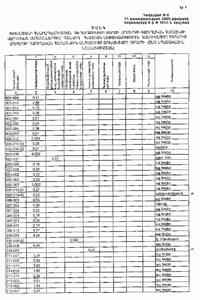 6 հոկտեմբերի 2005 թվականի N 1912-Ն