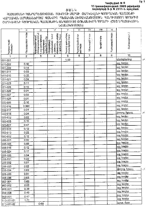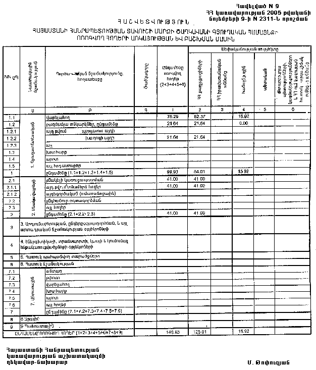 9 նոյեմբերի 2005 թվականի N 2311-Ն