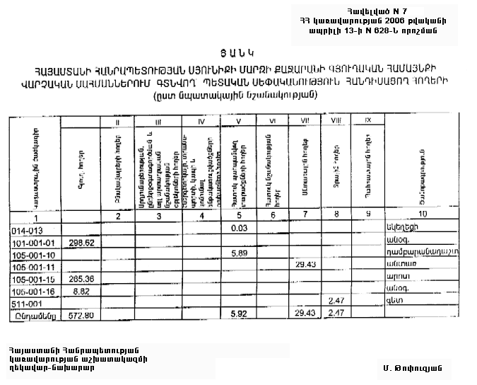 7. Հայաստանի Հանրապետության Սյունիքի մարզպետին` Հայաստանի Հանրապետության կառավարության 2000 թվականի հոկտեմբերի 23-ի N 656 որոշմամբ սահմանված կարգով` սկզբնական հաշվառման տվյալների հիման վրա ապահովել մարզի տարածքում ընթացիկ հաշվառման աշխատանքների իրականացումը:
