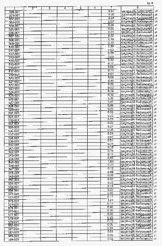 4. Ընդունել ի գիտություն Հայաստանի Հանրապետության Տավուշի մարզի Այգեձորի գյուղական համայնքի հողային ֆոնդի առկայության և բաշխման մասին հաշվետվությունը՝ 2005 թվականի հունվարի 1-ի դրությամբ՝ համաձայն NN 8 և 9 հավելվածների: