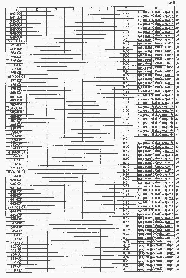 6. Թույլատրել Հայաստանի Հանրապետության կառավարությանն առընթեր անշարժ գույքի կադաստրի պետական կոմիտեի նախագահին Հայաստանի Հանրապետության պետական գեոդեզիական ցանցի հավասարակշռման արդյունքների հիման վրա Հայաստանի Հանրապետության վարչատարածքային միավորների սահմանանիշերի կոորդինատների ժողովածուի հրատարակումից հետո հողային ֆոնդի ընթացիկ հաշվառման ժամանակ Հայաստանի Հանրապետության Տավուշի մարզի Դովեղի գյուղական համայնքի հողային հաշվեկշռում սահմանված կարգով կատարել համապատասխան փոփոխություններ: