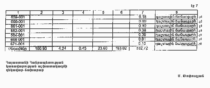 7. Հայաստանի Հանրապետության Տավուշի մարզպետին՝ Հայաստանի Հանրապետության կառավարության 2000 թվականի հոկտեմբերի 23-ի N 656 որոշմամբ սահմանված կարգով՝ սկզբնական հաշվառման տվյալների հիման վրա ապահովել մարզի տարածքում ընթացիկ հաշվառման աշխատանքների իրականացումը: