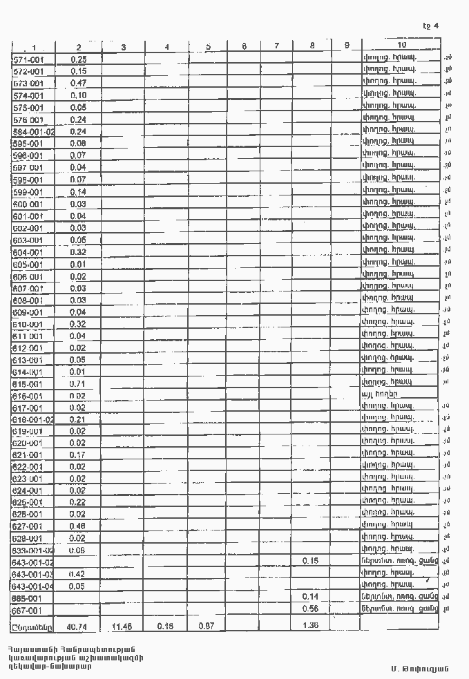 4. Ընդունել ի գիտություն Հայաստանի Հանրապետության Տավուշի մարզի Դովեղի գյուղական համայնքի հողային ֆոնդի առկայության և բաշխման մասին հաշվետվությունը՝ 2005 թվականի հունվարի 1-ի դրությամբ՝ համաձայն NN 8 և 9 հավելվածների: