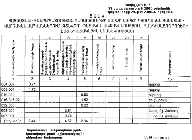 29 դեկտեմբերի 2005 թվականի N 2368-Ն