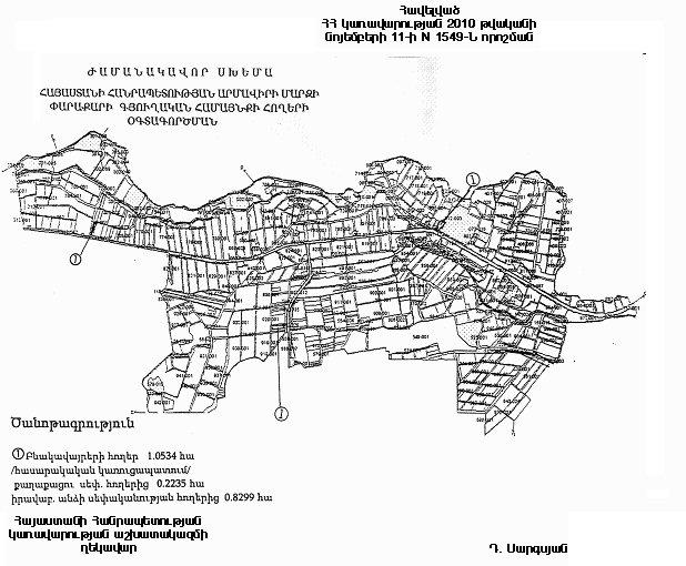 1. Հայաստանի Հանրապետության կառավարության 2005 թվականի սեպտեմբերի 28-ի N 1632-Ն որոշմամբ հաստատված` Հայաստանի Հանրապետության Արմավիրի մարզի Փարաքարի գյուղական համայնքի հողերի օգտագործման ժամանակավոր սխեմայում` համաձայն հավելվածի, համայնքի վարչական սահմաններում գտնվող 1.0534 հեկտար հողերը փոխադրել բնակավայրերի հողերի կատեգորիա` Հայաստանի Հանրապետության օրենսդրությամբ սահմանված կարգով հասարակական կառուցապատման համար, այդ թվում`